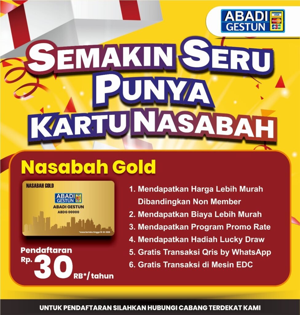 Abadi Gestun kini menghadirkan program keanggotaan eksklusif bagi Anda yang ingin mendapatkan lebih banyak keuntungan, kemudahan, dan promo menarik dalam setiap transaksi.