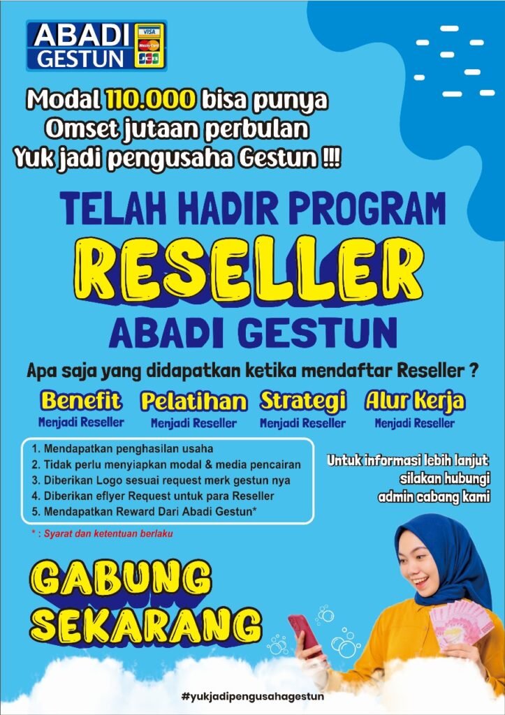 Untuk informasi lebih lanjut, silakan hubungi admin cabang terdekat dan segera bergabung dalam Program Reseller Abadi Gestun.